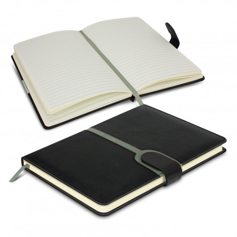 Exceptional medium-size notebook with 80 leaves (160 pages) of high quality 80gsm lined cream paper. It has a hard leather-look PU cover with a vibrant coloured inlay. Other features include smart stitching on the cover, a secure magnetic closure band and a bookmark ribbon.