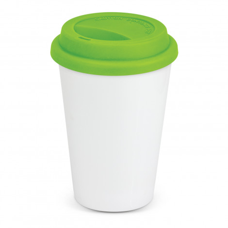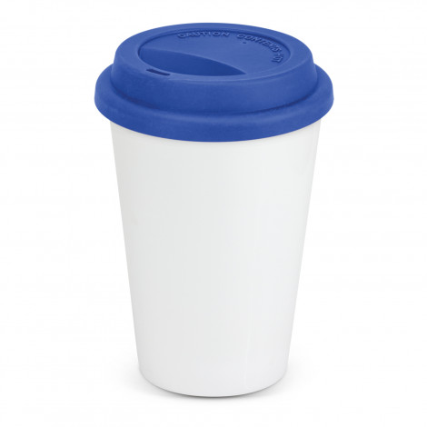 Robust 300ml double wall ceramic coffee cup which will keep drinks hot for longer and remain comfortable to hold. It has a secure push on silicone lid and is presented in a black gift box. This product is not dishwasher safe and handwashing is recommended.